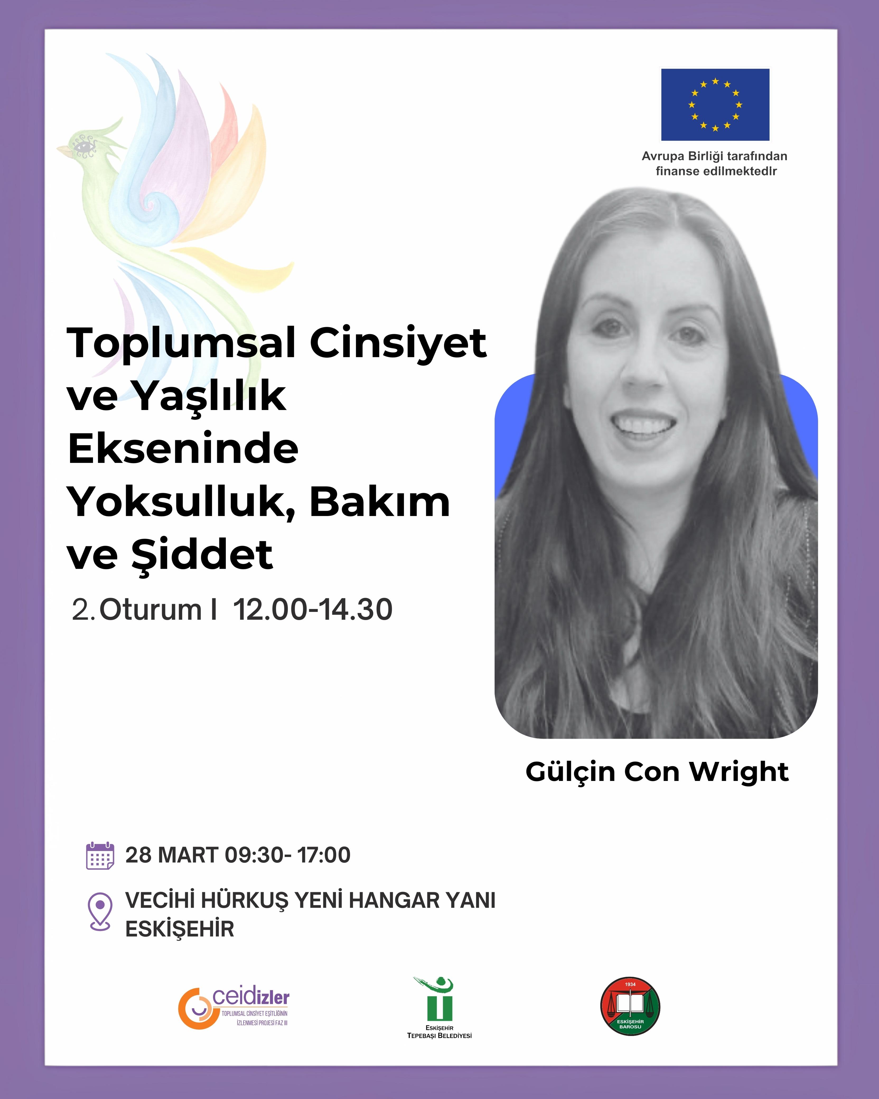 Dr. Gülçin Con Wright gave a presentation titled "Poverty, Care, and Violence in the Context of Gender and Aging" at a seminar held in Eskişehir on March 28, 2026, as part of the CEİDİzler program.